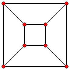 Diese Strecke enthält und als Endpunkte, für bzw. . Diese beiden Endpunkte sind zugleich die einzigen Punkte dieser Strecke, bei denen nur eine Koordinate von verschieden ist, bei den anderen Punkten der Strecke sind zwei Koordinaten von verschieden, nämlich die - und die -Koordinate. Die Strecken zu verschiedenen Kanten haben allenfalls einen Endpunkt gemeinsam, und dies ist genau dann der Fall, wenn die zugrunde liegenden Kanten im Graphen einen gemeinsamen Knotenpunkt besitzen. D.h. es liegt insbesondere eine (überschneidungsfreie) geometrische Realisierung des Graphen im Sinne der folgenden Definition vor.