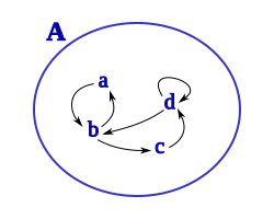 Eine wichtige Darstellungsmöglichkeit für eine Relation auf einer Menge ist durch ein Pfeildiagramm gegeben, man spricht auch von einem gerichteten Graphen. Dabei werden die Elemente der Grundmenge als Punkte (Knoten) gezeichnet, und es wird genau dann ein Pfeil von Punkt zu Punkt gezeichnet, wenn gilt. Die Richtung des Pfeiles ist dabei wichtig. Wenn allerdings die Relation symmetrisch ist, so gibt es zu jedem Pfeil den entsprechenden Rückpfeil. Daher drückt man symmetrische Relationen direkt durch ungerichtete Pfeile (Kanten, Verbindungsstrecken) aus und spricht von ungerichteten Graphen.
