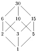 Wir betrachten die positiven natürlichen Zahlen zusammen mit der Teilbarkeitsbeziehung. Dies ergibt eine Ordnung auf . Die Teilbarkeitsrelation ist in der Tat reflexiv, da stets ist, wie zeigt. Die Transitivität wurde in Lemma 7.9 (3) gezeigt. Die Antisymmetrie folgt so: Aus und folgt . Da wir uns auf positive natürliche Zahlen beschränken, folgt mit der Kürzungsregel und daraus wegen auch . Also ist . Einfache Beispiele wie und zeigen, dass hier keine totale Ordnung vorliegt, da weder von noch umgekehrt geteilt wird.