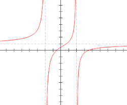 Eine rationale Funktion in ist von der Form mit zwei Polynomen in einer Variablen , wobei der Ausdruck nur dort einen Sinn ergibt, wo der Nenner nicht ist, an den Nullstellen des Nennerpolynoms ist die rationale Funktion nicht definiert.Wenn der Nenner ist, der Zähler aber nicht, so ist die Undefiniertheitsstelle ein „Pol“ - der reelle Graph strebt nach bzw. - Es ist verlockend zu sagen, dass der Wert der rationalen Funktion an diesen undefinierten Stellen „unendlich“ ist, und im Kontext der projektiven Geometrie macht das durchaus Sinn, wie wir später sehen werden. Die „Graphengleichung“ ist jedenfalls wegen den Undefinierbarkeitsstellen keine optimale Beschreibung für die Kurve. Wenn man sie hingegen mit dem Nennerpolynom multipliziert, so erhält man die Bedingung