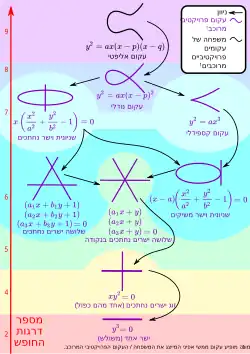 Da dies durch eine homogene Gleichung gegeben ist, kann man diesen Kegel auch sofort als eine ebene projektive Kurve (vom Grad zwei)