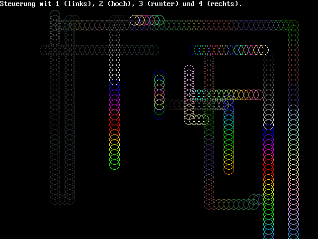 Print "Steuerung mit 1 (links), 2 (hoch), 3 (runter) und 4 (rechts)."
