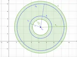 Etwas allgemeiner als obige Entwicklung ist die folgende: Seien zwei Radien (die Entwicklung um einen Punkt entspricht ), und sei