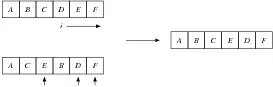 | Rekombinationsoperator für das Problem des Handelsreisenden. Von der ersten Lösung werden die erste bis zur -ten Stadt genommen. Die restlichen Städte werden in der Reihenfolge wie sie in der zweiten Lösung stehen in der neuen Lösung eingetragen. |