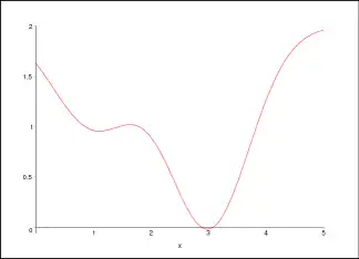 Wir suchen das Minimum der Funktion aus dem obigen Beispiel