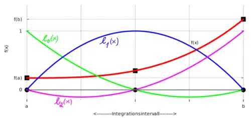 Sei und die Knoten der Interpolation. Die Lagrange Grundpolynome zu diesen Knoten sind quadratische Funktionen