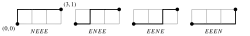Es sei ein Gitter mit Querkästchen und mit Hochkästchen gegeben. Wie viele Möglichkeiten gibt es, von links unten nach rechts oben entlang der Gitterkanten zu wandern, wenn man in jedem Schritt nur nach rechts oder nach oben wandern darf?