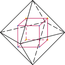 Bei einem Würfel gibt es drei verschiedene Arten von Drehachsen: Es gibt drei Drehachsen, die durch die Seitenmittelpunkte gegeben sind, vier Drehachsen, die durch die Eckpunkte gegeben sind und sechs Drehachsen, die durch die Kantenmittelpunkte gegeben sind. Betrachtet man alle Durchstoßungspunkte dieser Achsen mit der Sphäre vom Radius , so ergeben sich