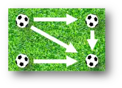Eine (Fußball-)Spielgruppe bei einer Europa- oder Weltmeisterschaft besteht aus vier Mannschaften, und jede spielt gegen jede. Ein Spiel kann unentschieden oder mit einem Sieg für eine der beiden Mannschaften enden. Wir interessieren uns für die diskrete Struktur einer Spielgruppe, die man durch einen gerichteten Graphen beschreiben kann, wobei man einen Sieg von über durch einen Pfeil von nach (und ein Unentschieden durch keine Verbindung) ausdrücken kann.