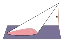 {\displaystyle {\left\{(x,y\cos \alpha ,y\sin \alpha )\in \mathbb {R} ^{3}\mid (x,y)\in T,\,\alpha \in [0,2\pi ]\right\}}}