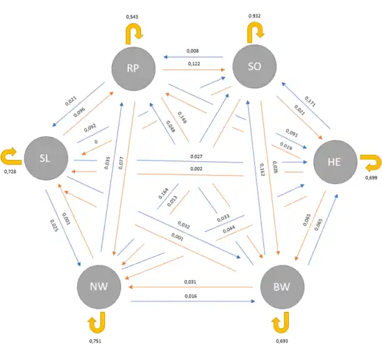 - beschreibt den Anteil der Migranten, die zum Zeitpunkt nach Rheinland-Pfalz wandern (in diesem Zyklus: 5%)