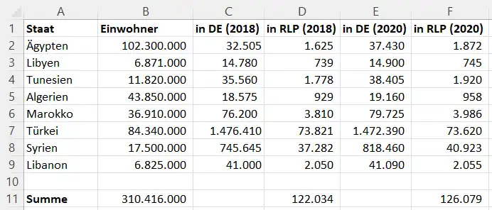 | Syrien | 17.500.000 | 745.645 | 818.460 |