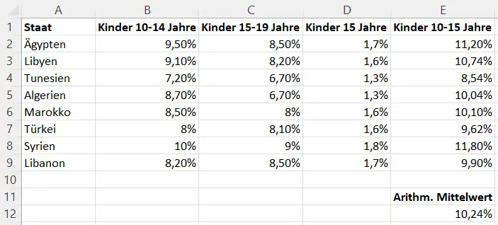- Gewichtung des Mittelwertes (arithmetisches Mittel verwendet)