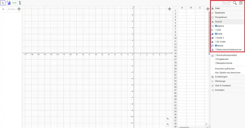 Über Tool CAS: Ableitungen, Integrale, LGS lösen etc.