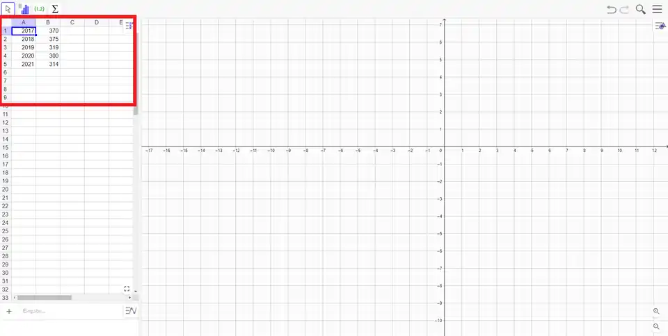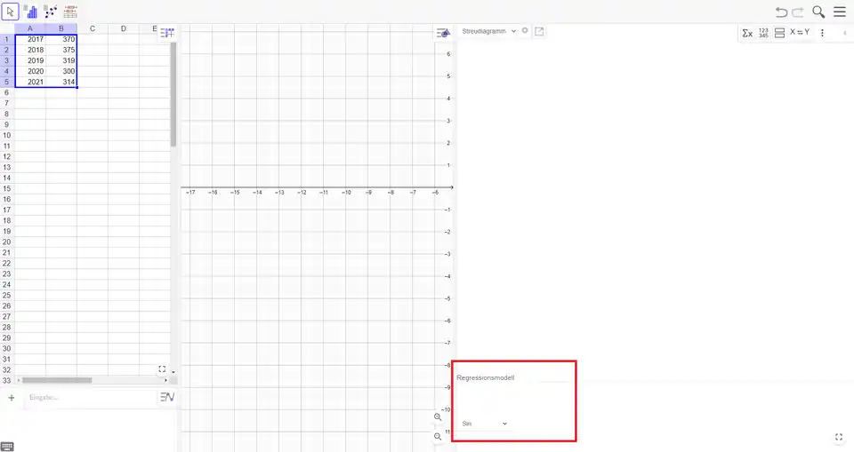 Anzahl Studienanfänger (Y-Wert) abhängig vom Jahr (X-Wert) als Punkte eintragen