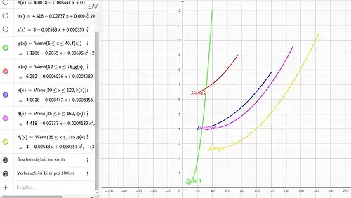 Die Kraftstoffverbrauchsfunktionen wurden dann mit dem Programm GeoGebra dargestellt.
