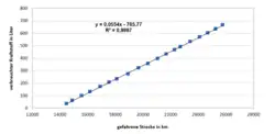 Da die Vermutung nach einem linearen Zusammenhang, und damit einer linearen Funktion naheliegt, wurde mittels linearer Regression eine Gerade konzipiert, die durch möglichst viele Punkte der Punktwolke geht.