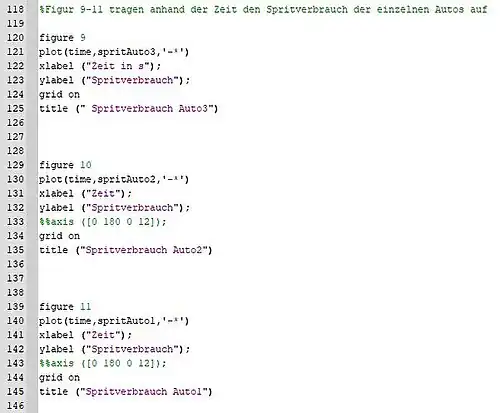 Unter anderem wurde hier mit dem Befehl trapz die Fläche näherungsweise unter der Spritfunktion bei allen drei Autos berechnet.