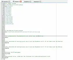 Dafür wurde ein Skript erstellt, sodass nur noch die einzelnen Matrizen angepasst werden sollten. Zum Beispiel wurden die Matrizen transponiert mit dem Befehl ´ oder die Inverse bestimmt mit .
