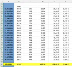 | 27.10.2009 | 20373 | 696 | 35,7 | 39,59 |