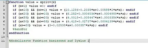 Die Ergebnisse der Spritfunktion wie oben beschrieben wurden ebenfalls in Octave modelliert.