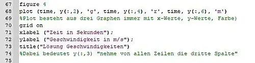 Octave-Befehl Geschwindigkeiten: