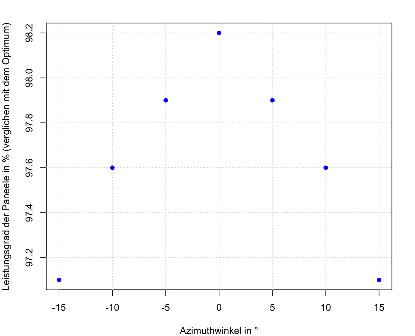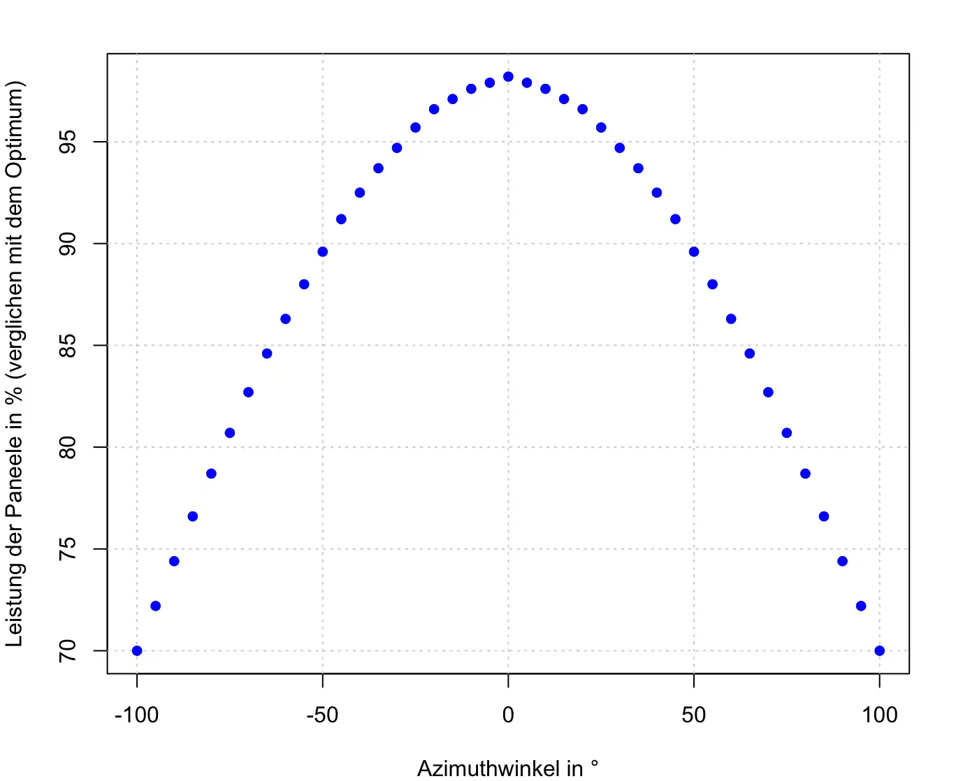 | Azimuth | Anzahl Module | Leistungsgrad in % | Leistungskoeffizient | ||