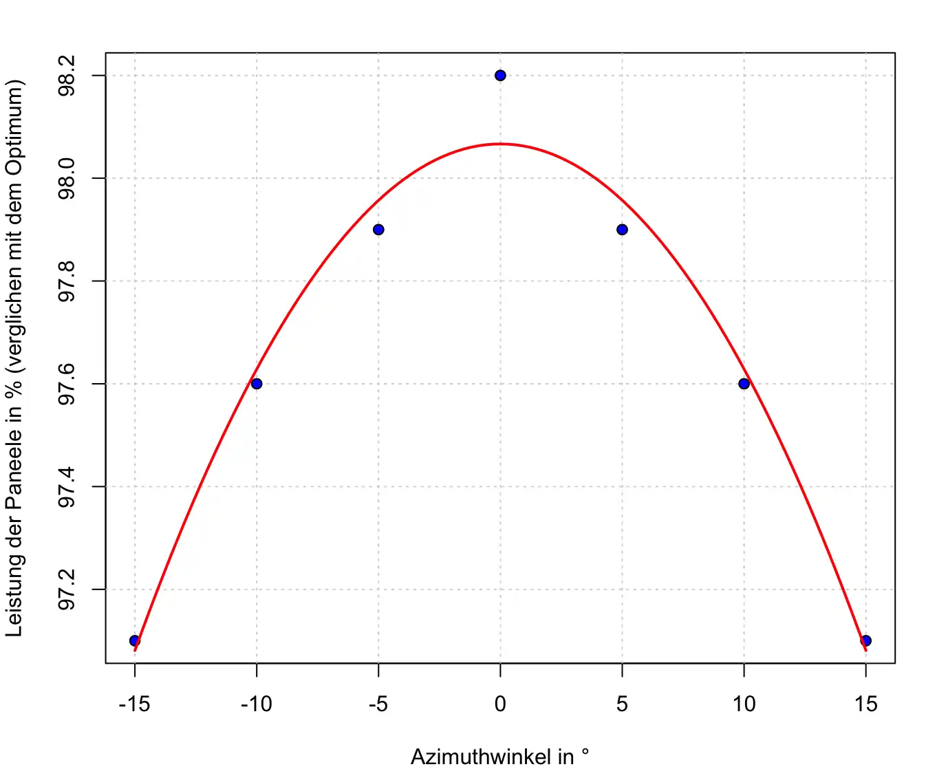 - Abgesehen von den praktischen Problemen des zu großen Rechenaufwands werden bei diesem Vorgehen nur ganzzahlige Werte für betrachtet. Der tatsächliche optimale Neigungswinkel könnte ja auch zwischen zwei ganzzahligen Werten liegen (z.B. bei 39,47°)