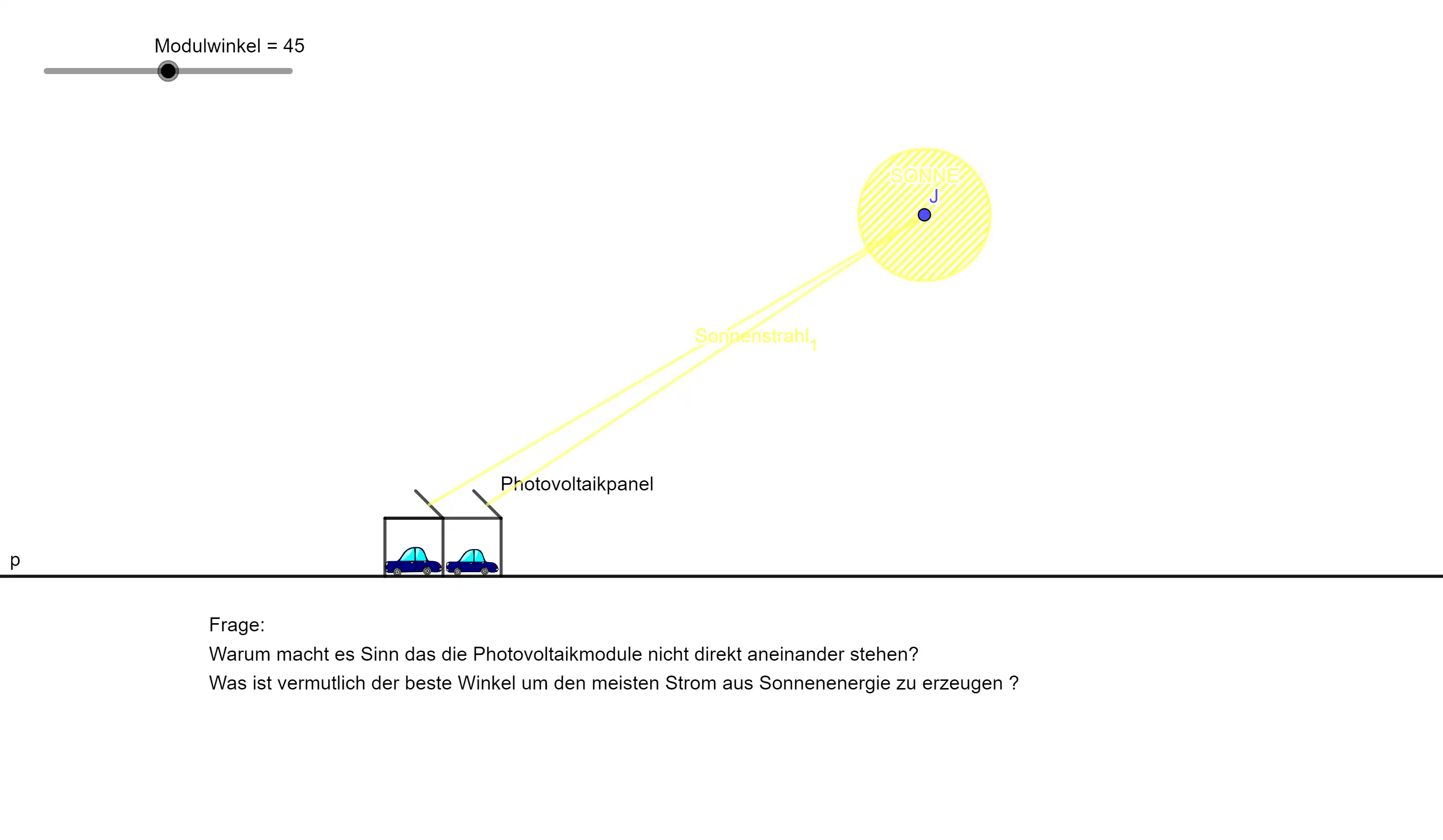 Photovoltaikmodule erzeugen Strom aus Sonnenlicht. Doch nicht jede Ausrichtung bringt die gleiche Menge an Energie! Wir wollen herausfinden, wie wir die Module optimal platzieren müssen, um den besten Ertrag zu erhalten.