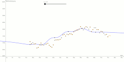 Die Wichtungsfunktionen sollen an jedem x-Wert mit den Funktionswert 1 haben, ansonsten gegen 0 konvergieren. Mithilfe eines Schiebereglers s kann reguliert werden, wie schnell dies geschehen soll. Anschließend wird eine Funktion erstellt, die die Wichtungsfunktionen subsummiert mit Berücksichtigung der y-Werte der Punkte .