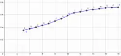 Auf den zweiten Blick erkennt man, dass eine Spline Interpolation hier ungeeignet ist, da es sich bei den interpolierten Koordinaten lediglich um Messwerte handelt, die fehlerbehaftet sind. Wenn mehr Messwerte zur Verfügung stünden wäre es sinnvoll die Näherungsfunktion der Transmissivität als gewichtete Funktion zu interpolieren.