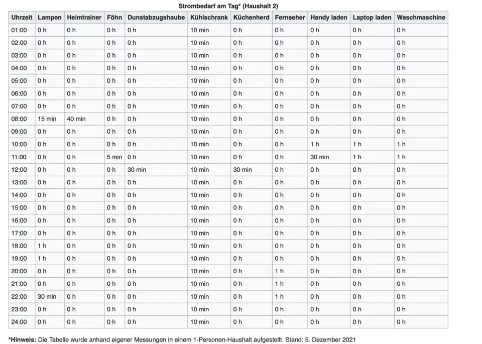 Strombedarf am Tag