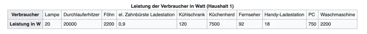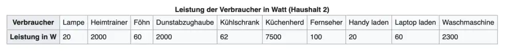 Leistung der Stromverbraucher