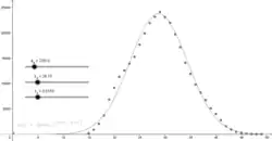 Die Daten haben wir den Statistiken des Statistischen Bundesamts entnommen. Daraus haben wir die Daten der Erstgeburten der Frauen zwischen 15 und 49 Jahren aus den Jahren 2009, 2012 und 2015 verwendet. Das Statistische Bundesamt stellt diese Daten bereits in Excel-Tabellen zur Verfügung. Diese haben wir in die Tabellenkalkulation von Geogebra übertragen, damit wir mit Hilfe von Schiebereglern die Gaußsche Glockenform mit visuellem Maß an die Liste von Punkten (Alter, Anzahl der Erstgeburten) der verschiedenen Jahre anpassen können. Diese soll dazu dienen, eine Veränderung der vergangenen Jahre zu erfassen.