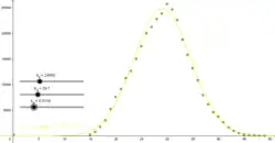 Die Abbildungen zeigen die visuelle Anpassung der Gaußschen Glockenform an unsere Punktemenge (Alter der Frau, Erstgeburtenzahl) in den Jahren 2009, 2012 und 2015 mit Hilfe der Schieberegler.
