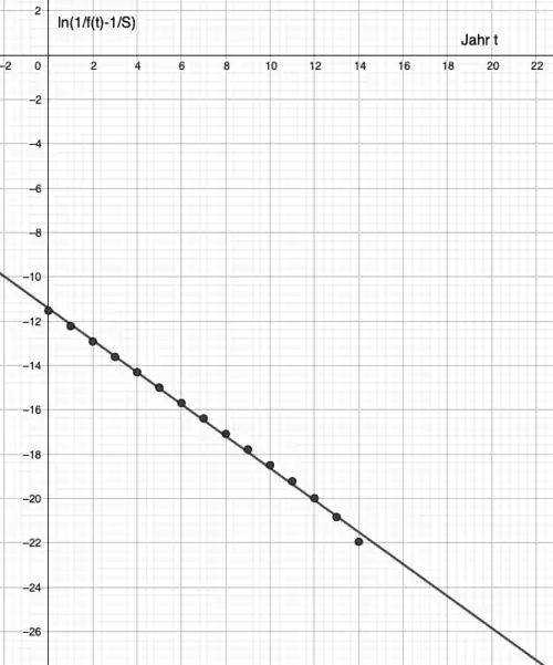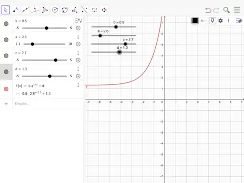 Diese Funktion kann man nun mit Geogebra plotten und schauen, ob die ausgerechneten Werte und die Funktionswerte übereinstimmen.