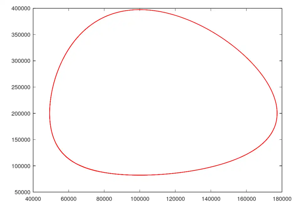 Ist das Funktionspaar F(t), B(t) eine Lösung der Lotka-Volterra_Differentialgleichung mit den Parametern a,b,c,d, so liegen alle Paare (F(t), B(t)) auf einer Höhenlinie der Funktion