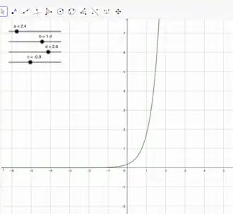 - Zu den gleichen (additiven) Zuwächsen im Argument gehört immer der gleiche Wachstumsfaktor: Wird das Argument um den Wert +c vergrößert, dann nimmt der Funktionswert um den gleichen Faktor ·d zu. Für alle x aus den Reellen Zahlen gilt