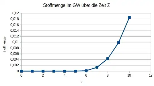 Für den Modellierungszyklus 3 wird lediglich der Diffusionskoeffizient des gewünschten Stoffes benötigt. Ist dieser nicht durch Literaturwerte bekannt muss dieser wieder im Labor ermittelt werden. Hier wurde zur besseren Veranschaulichung mit einem Diffusionskoeffizienten von gerechnet.