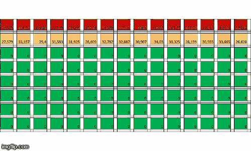 Optimiert wurde dieses Modell, indem die Excel Tabelle abhängig von der Größe der Werte eingefärbt wurde. Anschließend wurde eine Gif-Datei erstellt, indem mit "snipping tool" die Tabelle in 20 Zeitintervallen ausgeschnitten wurde. Hier ist dann deutlich sichtbar, dass das Maximum auseinander läuft. Der größte Wert des Maximums wird von Zeitintervall zu Zeitintervall kleiner, da sich die Werte der Konzentration mit jedem Zeitintervall auf immer mehr Zeilen ausbreiten und das Maximum somit breiter wird.