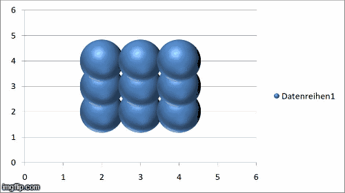 Es lässt sich beobachten, dass der Radius der mittigen neun Blasen abnimmt, da der Stoff hier aufgetragen wurde und sich in die Tiefe und in der Ebene verteilt. Währenddessen nimmt das Volumen der 16 äußeren Blasen zu, da dort der Stoff hin diffundiert. Die Diffusion erfolgt stets vom Ort höherer Konzentration zum Ort niedrigerer Konzentration. Dieser Konzentrationsgradient lässt sich im Dreidimensionalen mit dem Nabla-Operatoren beschreiben, welcher sich aus den ersten partiellen Ableitungen nach x, y und z des Ortsvektors zusammensetzt.