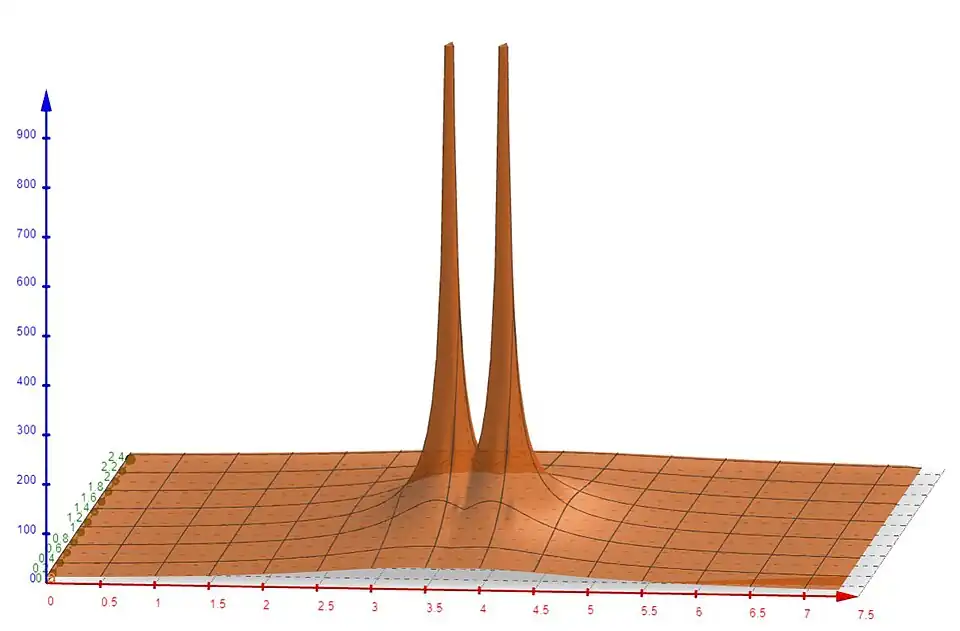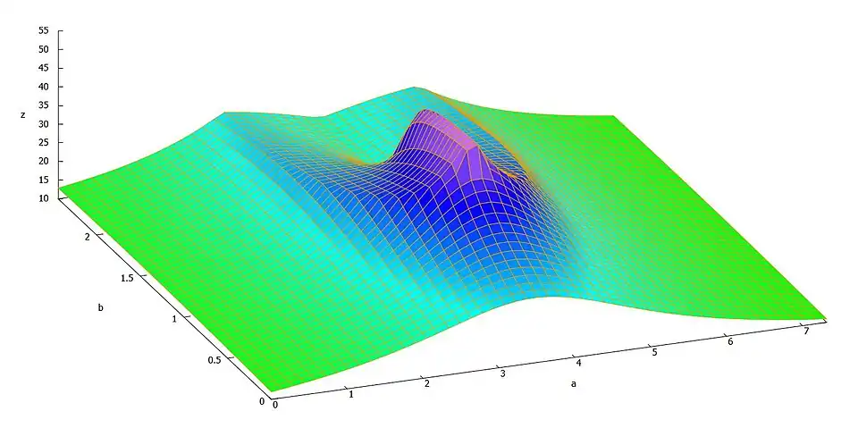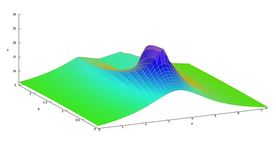 Allgemein sind Funktionen Beziehungen zwischen zwei Mengen. Bei den beiden Mengen handelt es sich um Definitionsmenge und Wertemenge, wobei jedem Elemente aus der Definitionsmenge mithilfe der Funktionsvorschrift genau ein Element der Wertemenge zugeordnet wird. In Zyklus 3 handelt es sich um eine Funktion, die von auf abgebildet wird. Das bedeutet, dass jedem Tupel eine reelle Zahl zugeordnet wird. Allerdings wird in diesem Fall nicht ganz betrachtet, sondern nur eine Teilmenge . Das heißt, dass gilt: und . Solche Funktionen können in einem Koordinatensystem dargestellt werden. In diesem Fall wird ein dreidimensionales Koordinatensystem genutzt, wobei eine Stelle auf der horizontalen Ebene darstellen und die Höhe des Punktes, der senkrecht über dieser Stelle auf dem Funktionsgraph liegt, bildet den dem Tupel zugeordneten Funktionswert. So ergeben sich verschiedene Graphen, die zum Teil einem Gebirge ähneln.