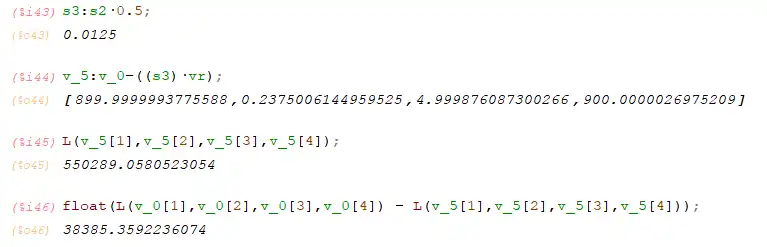 Da keine Verbesserung des Fehlers stattfinden konnte, muss die Schrittweite so lange halbiert werden, bis eine Verbesserung des Fehlers vorliegt. In unserem Fall konnte nach viermaliger Halbierung der Schrittweite eine Verbesserung erzielt werden.