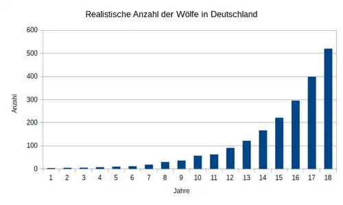 In Bayern werden in 40 Jahren, also im Jahr 2058, circa 2435 Wölfe leben, wenn man das Wachstum der Population nur von den Territorien abhängig macht.