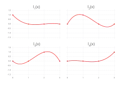 Eher für theoretische Betrachtungen günstig ist eine Darstellung in der Lagrange-Basis. Die Basisfunktionen sind die Lagrange-Polynome, also .