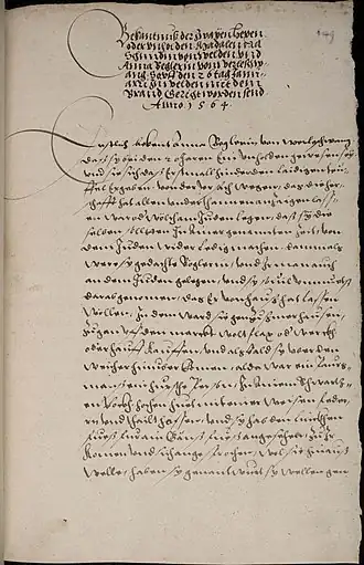 Aufgabe: Anfertigung einer Transkription des Hexengständnisses, mit anschließender Übersetzung und Kommentierung. Die Ergebnisse werden nach dann nach Wikisource übertragen. Die Bearbeitung findet im Arbeitsbereich statt und wird nach Prüfung und Korrektur hierher übertragen.