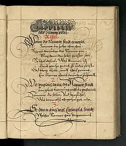 Diese Seite dient als Arbeitsbereich zur dritten Übung im Paläographie-Kurs (Rechenbuch des Andreas Reinhard). Hier können Seiten des Rechenbuchs gelesen und transkribiert werden. Um in Wikisource die Proofread-Extension zu nutzen (gleichzeitige Anzeige von Scan und Eingabefeld in einem Fenster), wird von den Kursteilnehmern auch dort viel gearbeitet, vgl. die folgende Übersicht.