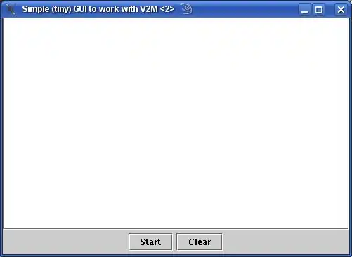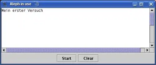 Es erscheint ein leeres Fenster mit den Buttons Start und Clear. Es handelt sich um die einfachste GUI von Aleph. Alle Ergebnisse werden in der Konsole angezeigt. Das Ergebnis ist im Abschnitt Erscheinungsbild dargestellt.