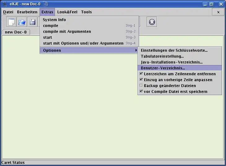 Angenehmer ist natürlich eine IDE. Natürlich sind Systeme wie eclipse und NetBeans sehr leistungsfähig, allerdings benötigen sie eine lange Zeit der Einarbeitung. Deshalb wird hier eXJE (evtl. von www.exmpl.de herunterladen) verwendet. Das System ist sehr einfach zu bedienen und bietet eine geschlossene, abgesicherte Umgebung.