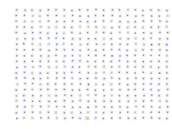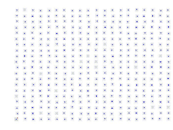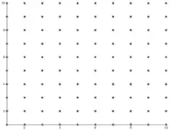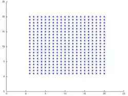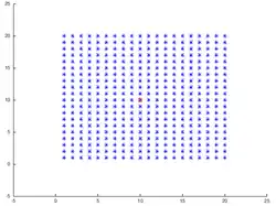 Um das Gitter zu konstruieren, muss die Kantenlänge der Quadrates durch geteilt werden, um die Gitterpunkte in gleichgroßem Abstand auf der Kante zu verteilen, bzw. den Abstand der Gitterpunkte zu berechnen. Da ein Quadrat vorliegt, ist die Anzahl der Gitterpunkte in x- und y-Richtung gleich groß.